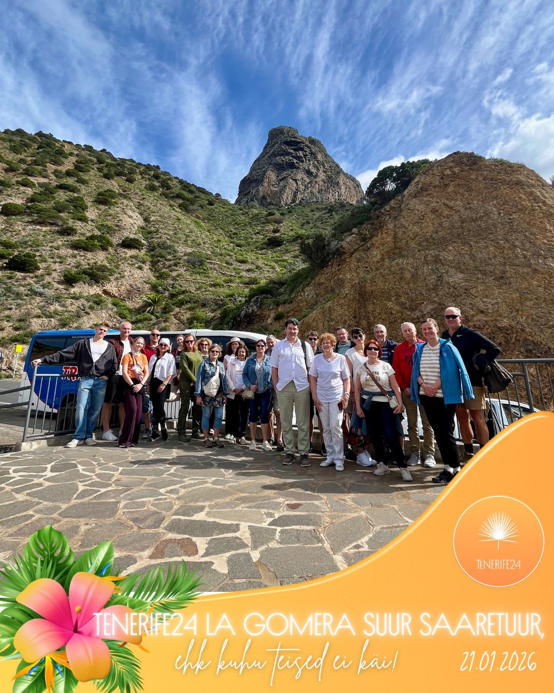 Soovid näha Tenerifet ja teisi Kanaari saari läbi kohaliku pilgu? Tahaksid kuulda Kanaari saarte ülipõnevast ajaloost, legendidest ja igapäevaelust kohalike eestlaste suust, lugusid, mida teised ei räägi? Soovid saada parimaid professionaalseid tuure - siis tule meie 6-le erinevale unikaalse marsruudiga eestikeelsele saaretuurile 4-l KANAARI SAAREL Tenerife24 kohalikest eestlastest ametlike litsentseeritud giidide Eike ja Gennoga UUEL PUHKUSEHOOAJAL 2025/2026! EESTLASTE TASUTA INFOTUNNIÕHTUD toimuvad meie kontoris Las Americases igal ESMAPÄEVAL ja REEDEL